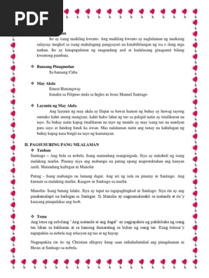 Ang Matanda at Ang Dagat Isinalin sa Filipino mula sa Ingles ni Jesus Manuel Santiago The Old Man and the Sea ni Ernest Hemingway bahagi lamang Maayos silang naglayag at ibinaba ni Santiago ang kaniyang mga kamay sa tubig-alat at sinikap na linawin ang kaniyang isip. Filipino 28012020 1528 candace08 Magbigay ng mahahalagang kultura mula sa kwentong ang matanda at ang dagat. Ang Matanda At Ang Dagat Ang Munting Prinsipe El Filibusterismo Noli Me Tangere Paglisan.
