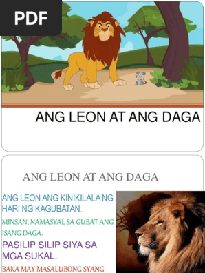 Isang daga ang naparaan at siyay naamoy ng leon kayat itoy nagising. View Ang Leon at ang Dagadocx from ENGLISH 1234 at University of the People. Be notified when an answer is posted.
