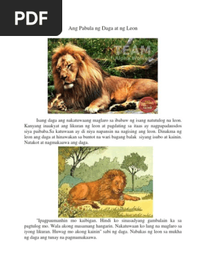 Nalibang siya sa paglala ro at natapakan niya ang mukha ng hari. Ang Pusa at Ang Daga Pabula ni Donato Sebastian Noong unang panahon may magandang samahan ang mga. Nang manlisik na ang mga mata ng Tigre at magsitayo na ang mga balahibo nito sa galit ay mabilis pa sa alaskwatrong nagtatakbong papalayo ang takut na takot na Lobo.